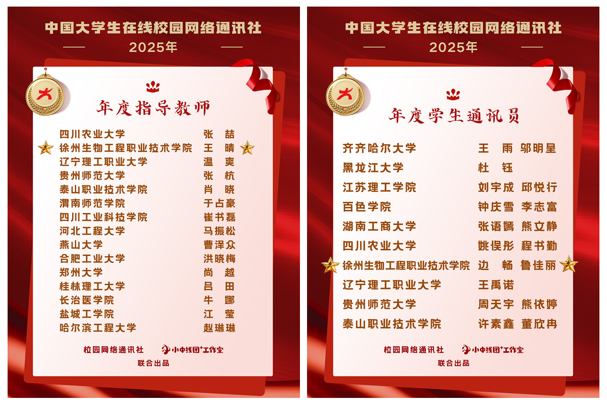 我校将继续坚守立德树人根本任务,以此次表彰为新起点,在网络文化主题活动宣传联动、网络育人内容资源建设、大学生网络宣传骨干培育等方面持续深化与中国大学生在线校园网络通讯站的合作共建,进一步挖掘优质网络思政资源, 创新思想引领方式方法,打造更多有温度、有深度、有力度的网络育人精品,唱响时代主旋律,传播青春正能量,为教育强国建设贡献徐生力量。